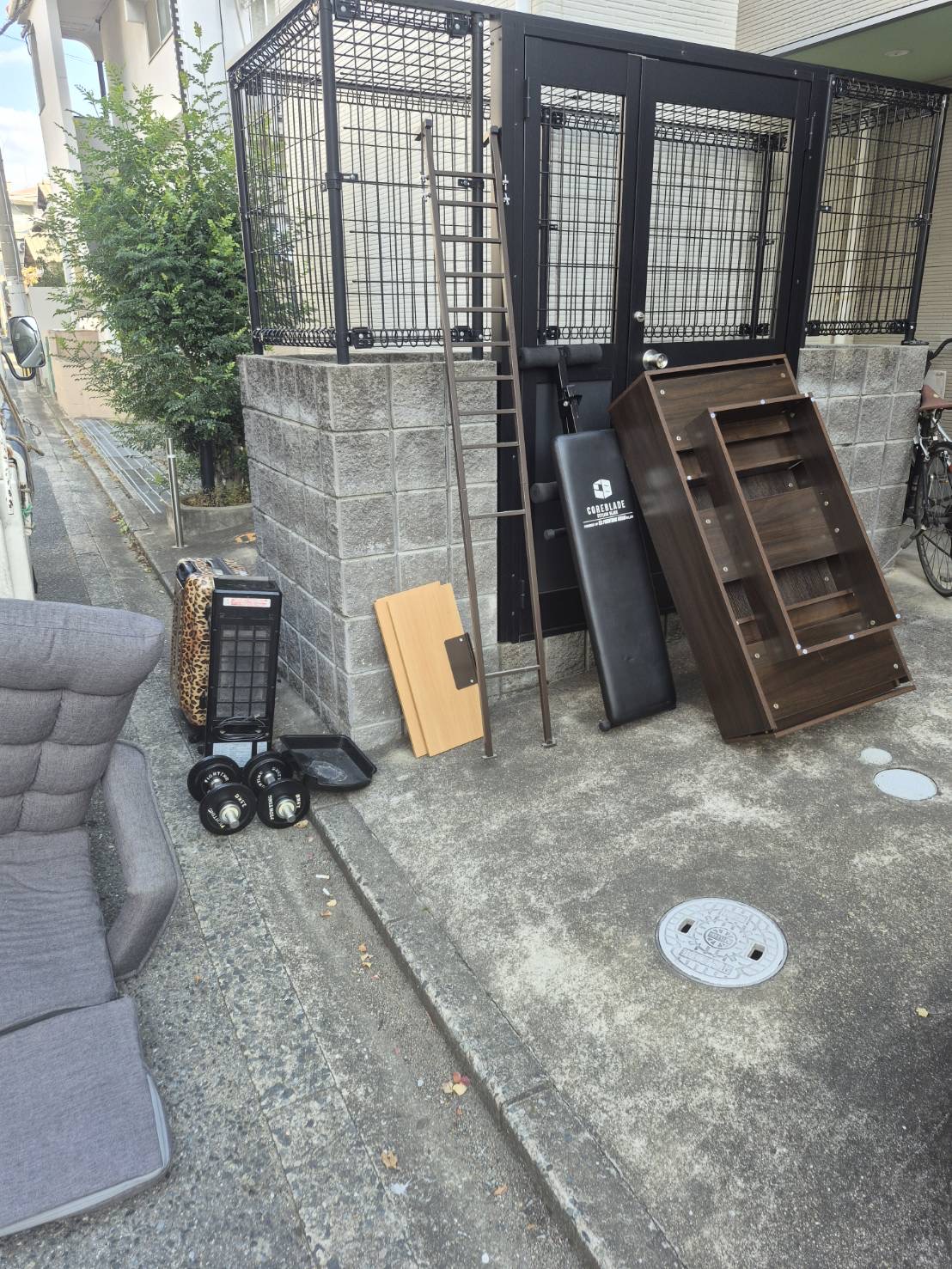 アパートの2階よりソファー、本棚、テーブル、椅子、トレーニング機など回収させていただきました!!